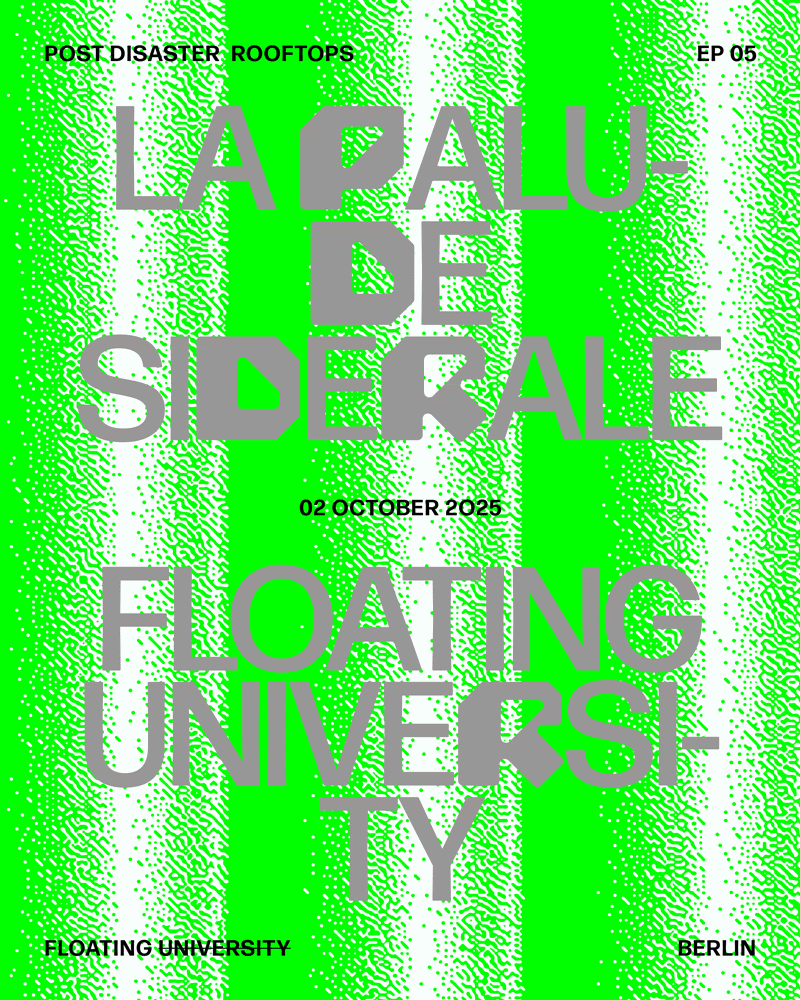 Will be speaking at Berlin's Floating University as part of the Taranto-based performance curation project Postdisaster Rooftop, alongside sound artist Alessandra Eramo!